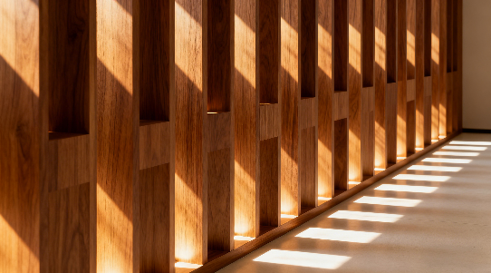 • The Master of Light & Shadow: The linear structure of the panels creates a stage for light to play. As light filters through, it produces rich, soft, and dynamic layers of shadow—an artistic effect unattainable with flat surfaces—adding immense depth and drama to the space.